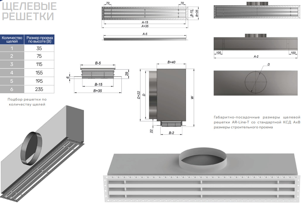 Щелевые решетки скрытого монтажа AR-Line-T предназначены для подачи и удаления воздуха системами вентиляции, кондиционирования и воздушного отопления и используются в качестве конечного декоративного элемента инженерной системы. Он обеспечивает подачу свежего или удаление загрязненного воздуха из помещений. Отличительной особенностью модели AR-Line-T является её дизайн, особая форма профиля образует длинную непрерывную воздушную линию в помещении, что отвечает требованиям самых современных дизайнерских идей.