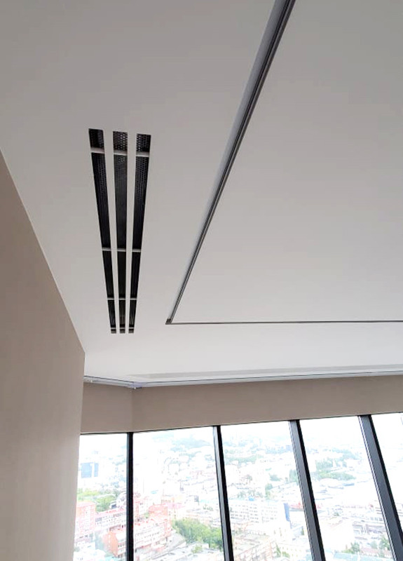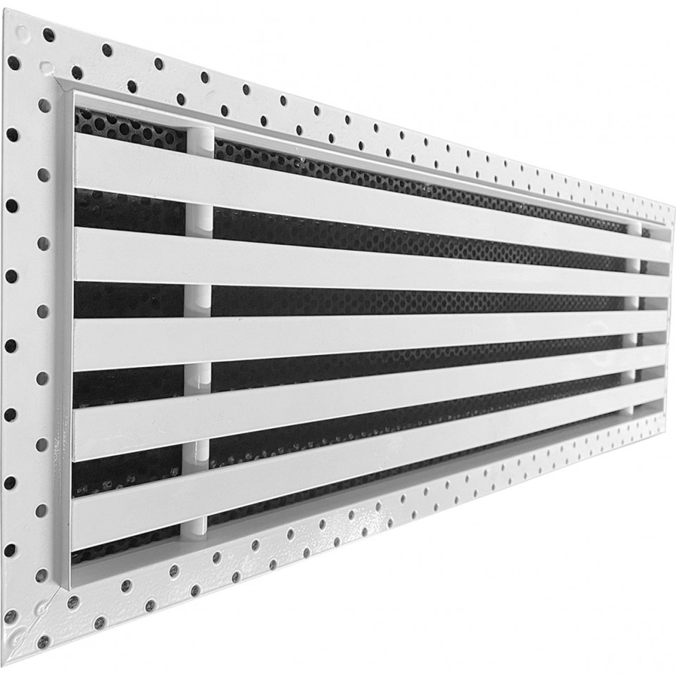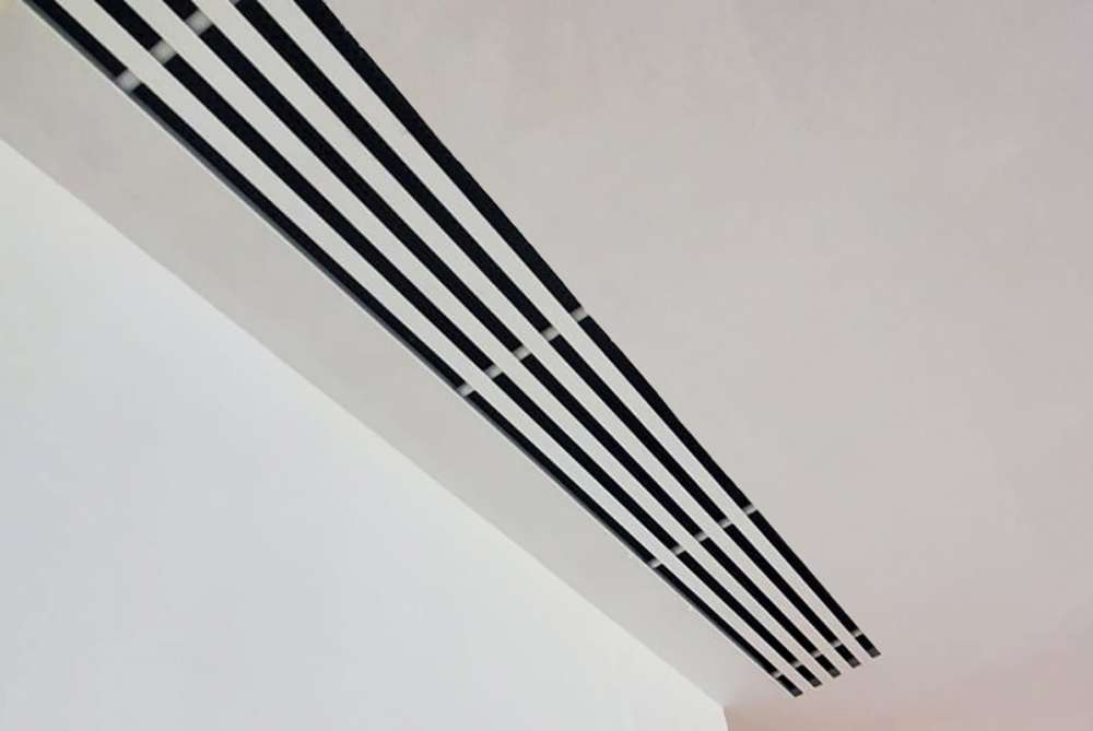 Линейный щелевой диффузор AR-Line-T представляет собой декоративную рамку из специального вентиляционного алюминиевого профиля и ламелей образующих ровные непрерывные слоты, внутрь рамки за ламелями установлена перфорированная пластина черного цвета обеспечивающая равномерное истечение воздуха в помещение.