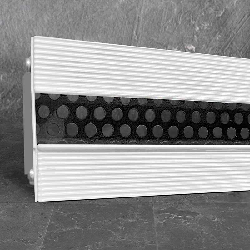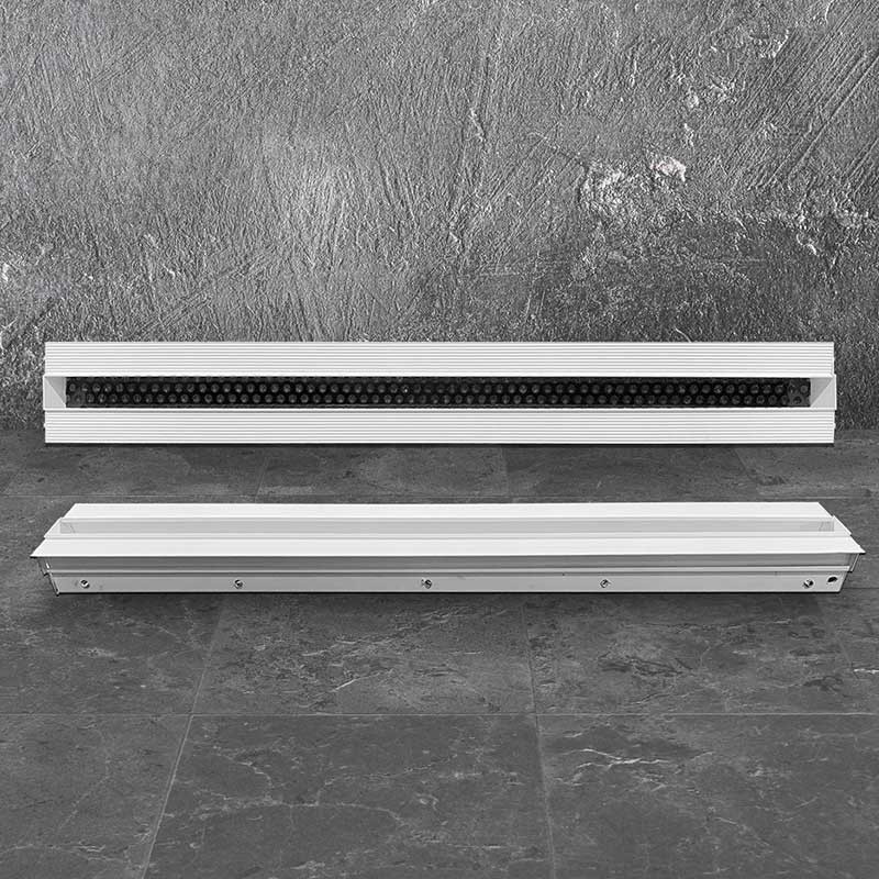Отличительной особенностью конструкции щелевых решеток ARS-Line от других решеток скрытого монтажа является отсутствие направляющих устройств для регулирования потока воздуха. Внутрь решетки установлена перфорированная пластина черного цвета для равномерного истечения потока воздуха в помещение.