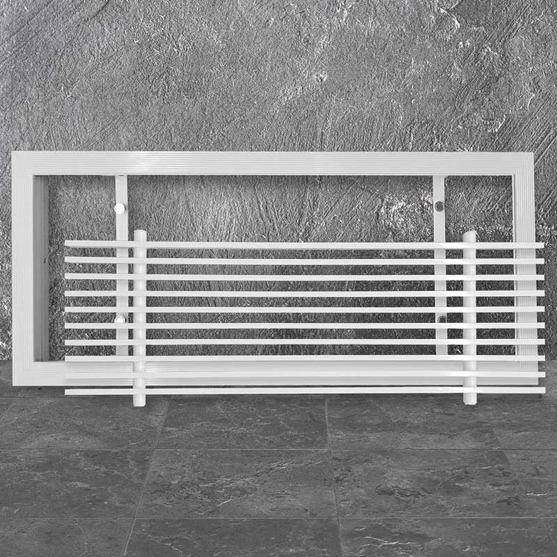 Щелевые решетки со съемным жалюзийным полотном ARS-Line-LS используются в системах вентиляции и кондиционирования в качестве конечного декоративного элемента инженерной системы. Они обеспечивают подачу свежего или удаление загрязненного воздуха из помещений. Отличительной особенностью решетки ARS-Line-LS является съемное жалюзийное полотно на магнитах, что значительно облегчает обслуживание вентиляционного канала в процессе эксплуатации. Неподвижные жалюзи Y-образной формы имеют ширину 5,5 мм и образуют ровные щели шириной 10 мм. Рамка линейной решетки имеет специальную форму для того, чтобы после монтажа решетки её не было видно, видимой частью в помещении остается только жалюзийное полотно. Рамка оснащена “полкой” 2,3 мм под шпаклевку. Ребристая поверхность профиля улучшает адгезию финишного материала. Решетки данного типа возможно изготавливать любого размера с шагом 1 мм. Минимальные рекомендуемые размеры 200х100, максимальные – 2000х1000. Щелевые решетки ARS-Line-LS изготавливаются из экструдированного алюминиевого профиля АД31 по ГОСТ 22233-2001. По умолчанию корпус решетки окрашивается в стандартный белый цвет RAL 9016. По индивидуальному заказу возможна окраска в любой цвет по шкале RAL. Для подключения к системе воздуховодов решетки комплектуются камерой статического давления – КСД или КСР. Камера статического давления является элементом систем вентиляции и кондиционирования воздуха, они обеспечивают равномерное распределение воздушных масс через сечение решетки. КСД состоит из стального корпуса с круглым патрубком для подсоединения к воздуховоду. КСР дополнительно оснащены устройством, регулирующим объем подаваемого воздуха, которое устанавливается во входном патрубке. Статическая камера изготавливается из оцинкованной листовой стали 0,4 – 1,5 мм в зависимости от размера и пожелания заказчика. По умолчанию все изделия поставляются в неокрашенном виде. К воздуховоду щелевые решетки монтируются посредством камеры статического давления(КСД). Решетка крепится саморезами к закладным деталям в КСД через крепежные элементы в решетке. После установки решетки к КСД, производится облицовка гипсокартоном (под гипсокартон на решетке предусмотрена полка 6 мм). Для лучшей адгезии финишного материала рамка имеет перфорацию.