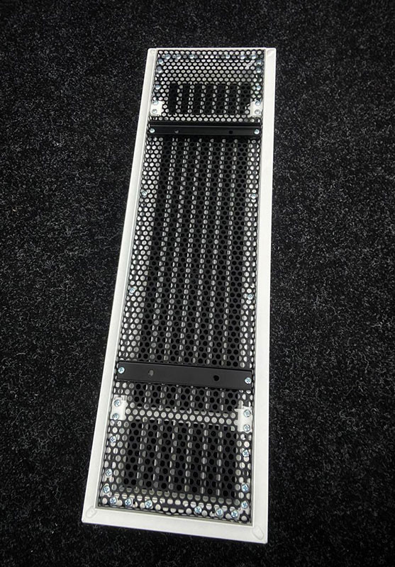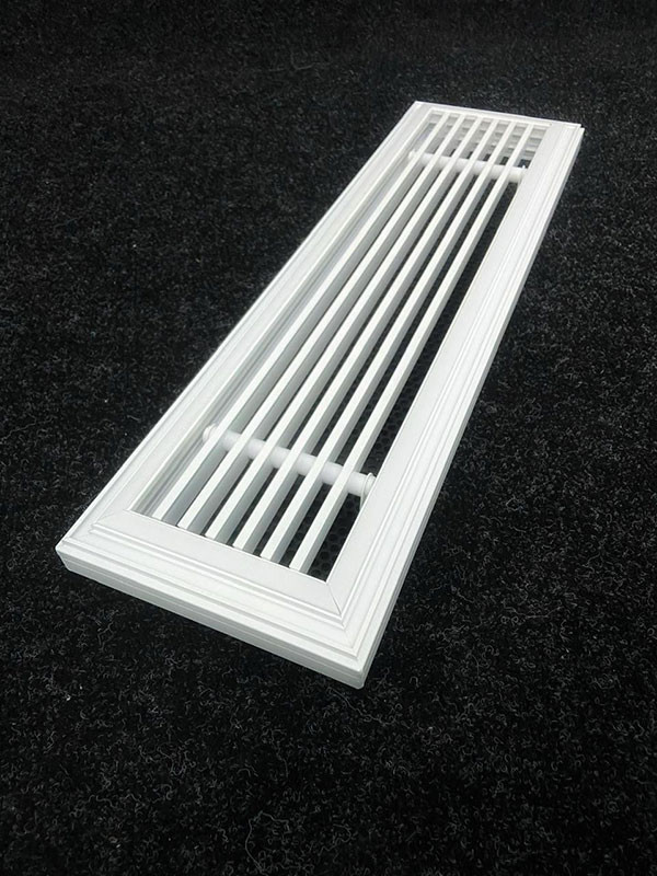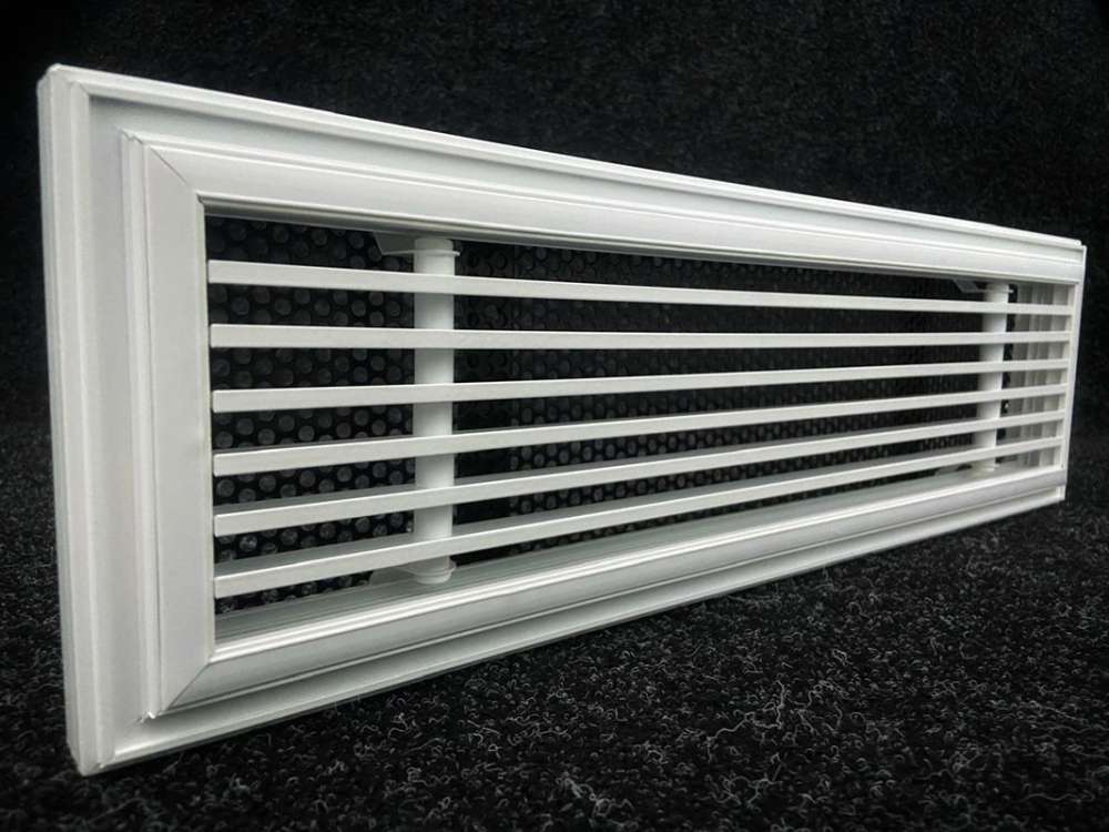 Щелевые решетки ARR-F и ARRS-F изготавливаются из экструдированного алюминиевого профиля АД31 по ГОСТ 22233-2018. По умолчанию корпус решетки окрашивается в стандартный белый цвет RAL 9016М матовый, а внутреннее исполнение в чёрный цвет RAL9005М матовый. По индивидуальному заказу возможна окраска в любой цвет по шкале RAL. Статическая камера изготавливается из оцинкованной листовой стали 0,4 – 1,5 мм в зависимости от размера и пожелания заказчика. По умолчанию все изделия поставляются в неокрашенном виде.
