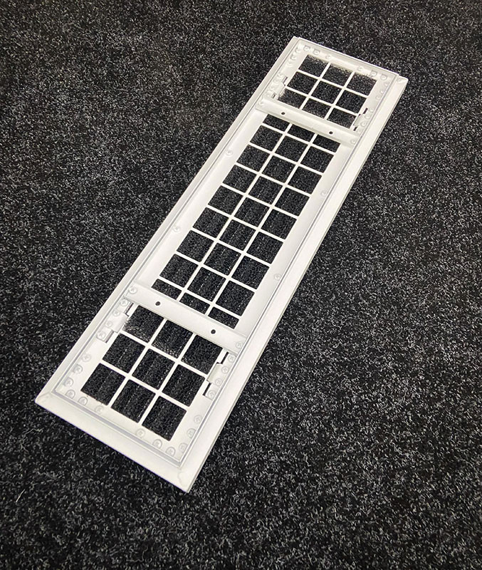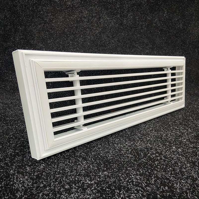 Щелевые решетки ARR-F и ARRS-F изготавливаются из экструдированного алюминиевого профиля АД31 по ГОСТ 22233-2018. По умолчанию корпус решетки окрашивается в стандартный белый цвет RAL 9016М матовый, а внутреннее исполнение в чёрный цвет RAL9005М матовый. По индивидуальному заказу возможна окраска в любой цвет по шкале RAL. Статическая камера изготавливается из оцинкованной листовой стали 0,4 – 1,5 мм в зависимости от размера и пожелания заказчика. По умолчанию все изделия поставляются в неокрашенном виде.
