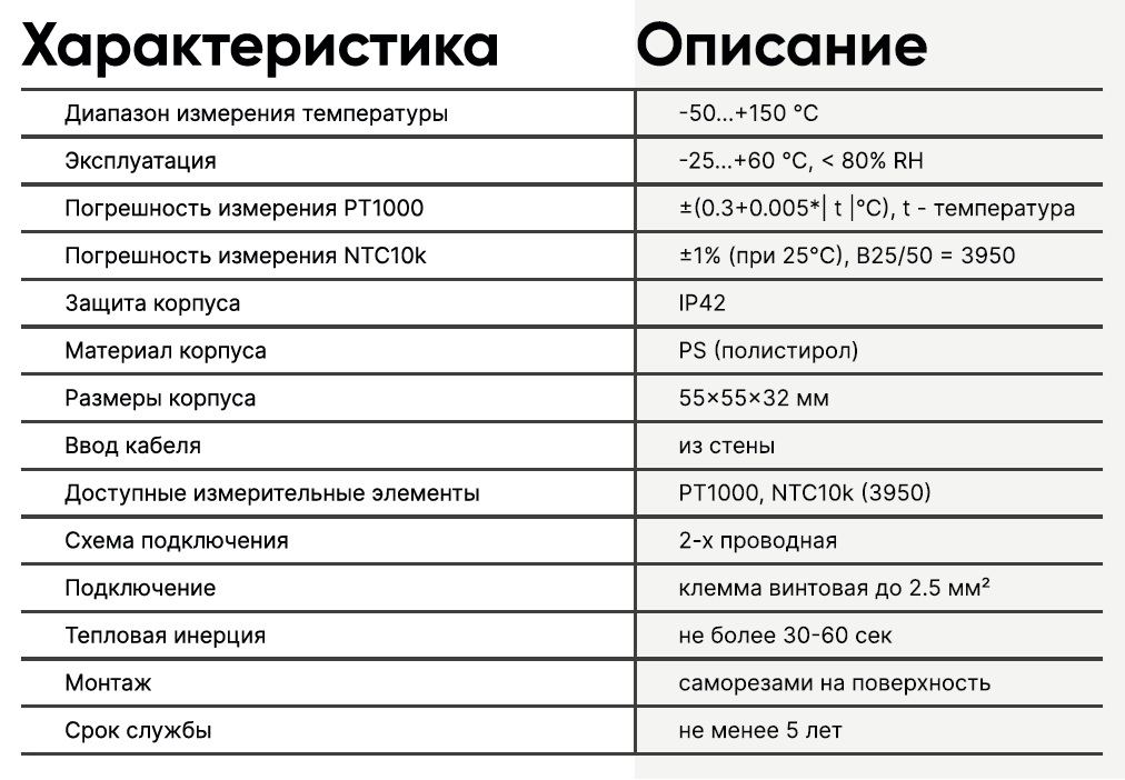 Комнатные датчики температуры серии VS-R01 ECO широко применяются в производственных и технологических помещениях, а также в санузлах и душевых, где важна степень защиты. Измерительный элемент установлен в основании датчика. Там же расположена клеммная колодка для подключения кабеля от системы автоматизации. Датчик конструктивно состоит из пластикового корпуса