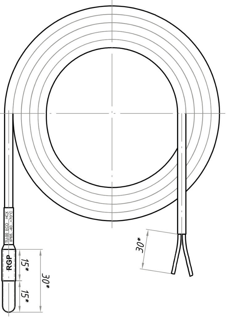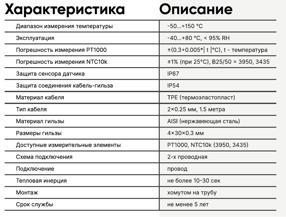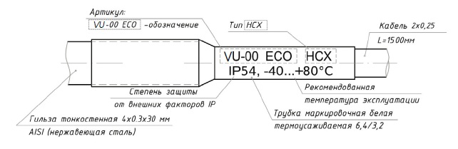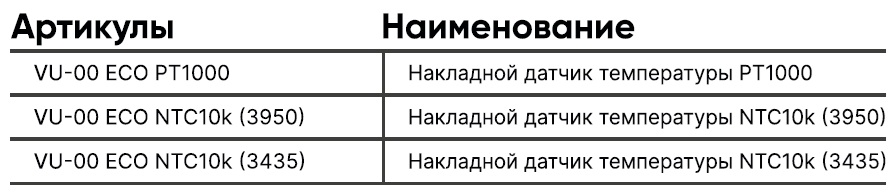Накладные датчики температуры серии VU-00 ECO применяются для измерения температуры поверхностей трубопроводов в системах ОВК, внутри шкафов управле-ния и автоматизации, в холодильных и морозильных ларях, в котельных, трубопроводов компрессоров. Измерительный элемент (сенсор) размещён в тонкостенной гильзе из нержавеющей стали 4×30×0.3 мм. Сенсор датчика температуры защищён от пыли и влаги по стандарту не ниже IP67 по технологии «ТСА» (заливка термопроводящим герметиком).