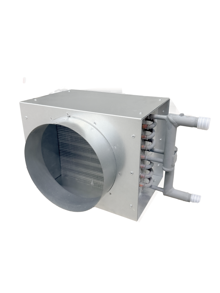 Воздухонагреватель для круглых каналов предназначен для подогрева воздуха и других невзрывоопасных газовых смесей в системах вентиляции и кондиционирования. Конструкция состоит из теплообменника и корпуса.